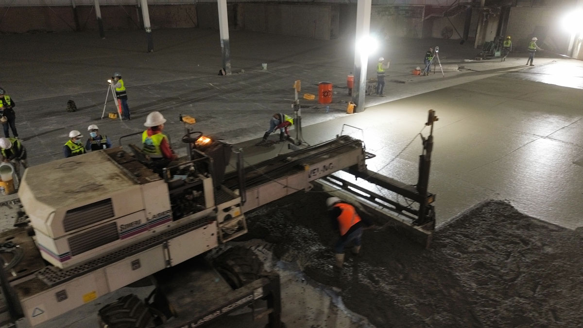En esta obra fue una tienda departamental de las tiendas ley, cliente Cemex, hicimos colocación de piso de concreto, sello de juntas de control y al final se hizo un sistema DIAMOND FLOOR.