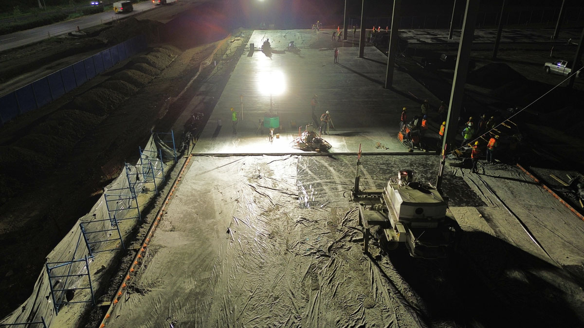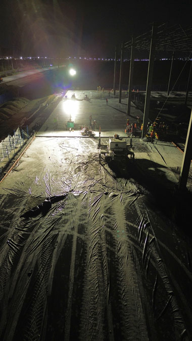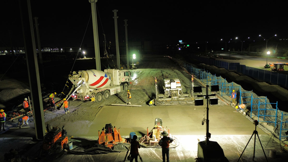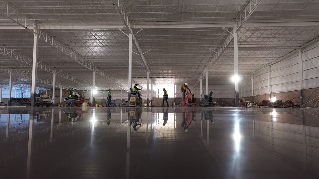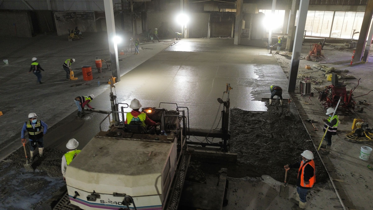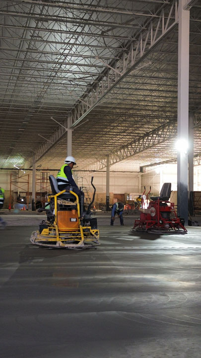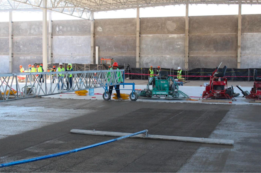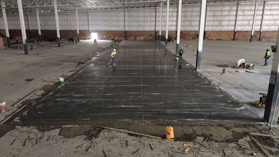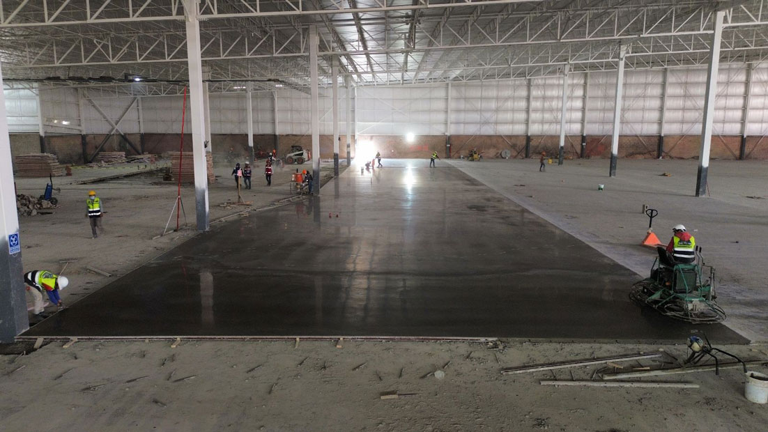 Obra echa en Monterrey Nuevo León 60,000m2 empresa maíz Mier, colocación de pisos de concreto, aplicadores de densificadores de concreto, sellado de juntas.