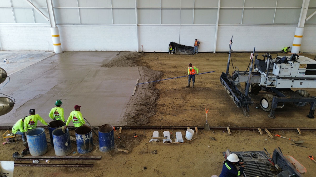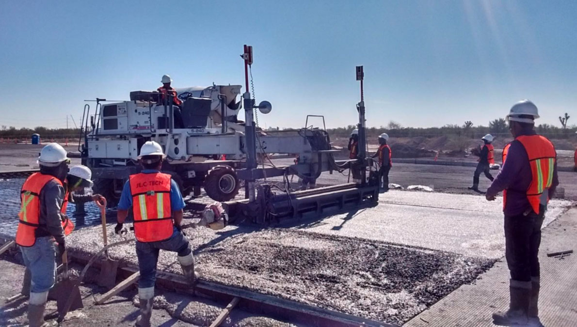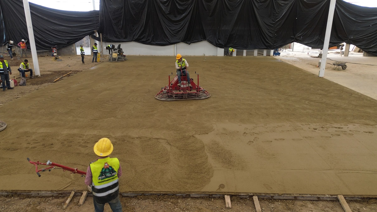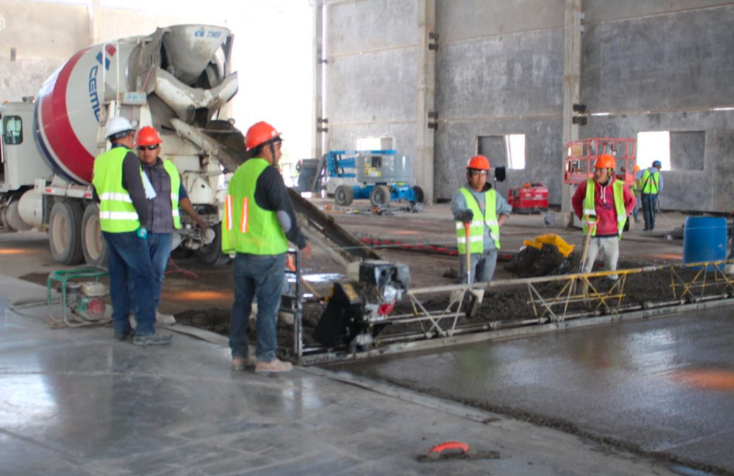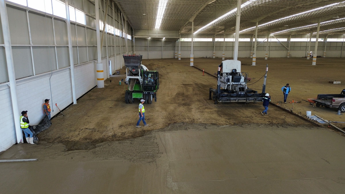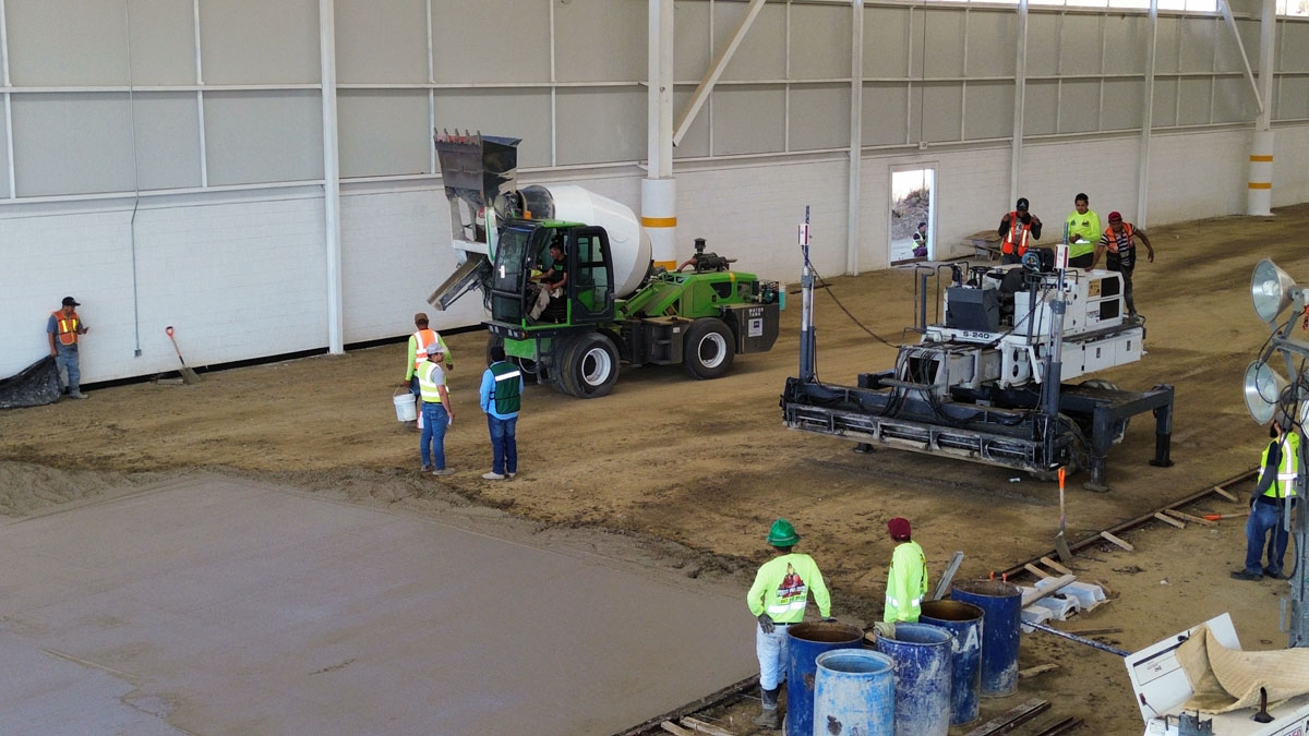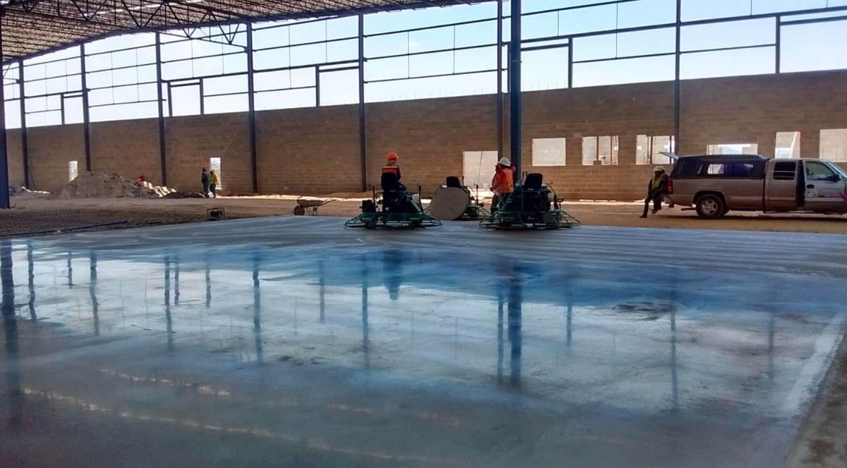 Nave industrial en Tecate, colocación de piso de concreto y fabricación del mismo concreto, acabado pulido 15 cm de espesor, con concreto mr42.